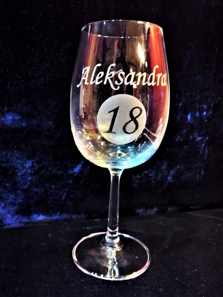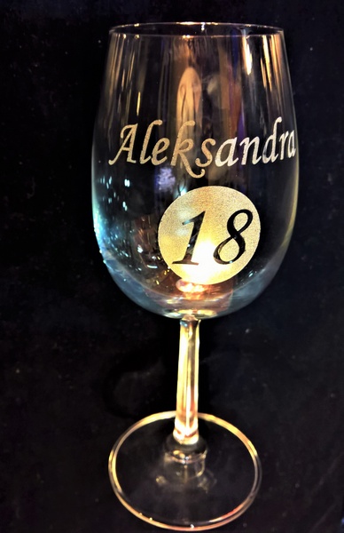 Pamiątkowy upominek na Urodziny w formie kieliszka do wina z grawerem.