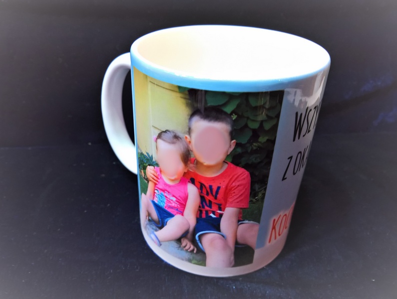 Na kubku można wykonać pełnokolorowy nadruk. Pole do nadruku wynosi 20x9cm.