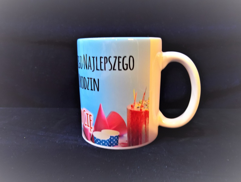 Prezentowany kubek dedykowany jest jako upominek na Urodziny, ale można wykonać go także na inną okazję.