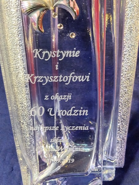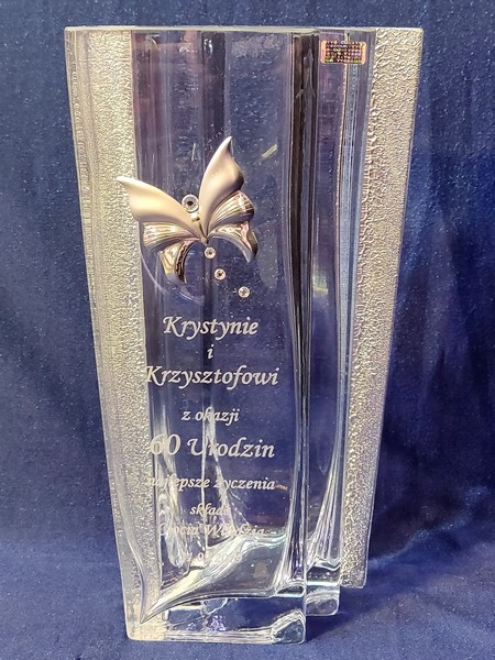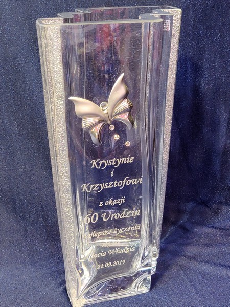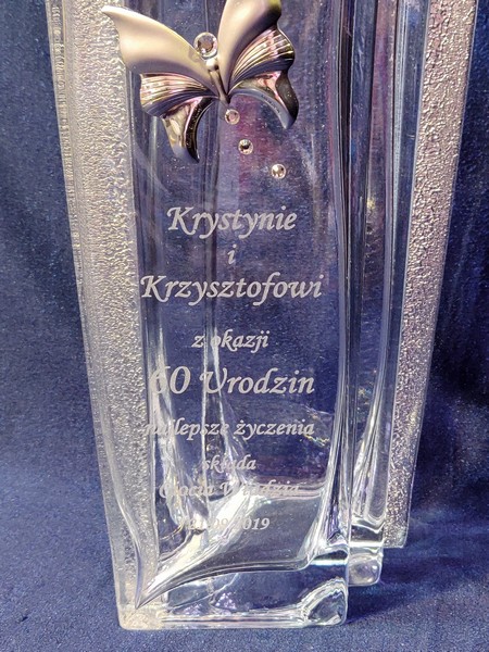 Na wazonie wykonany jest grawer indywidualnej dedykacji na pamiątkę urodzin.
