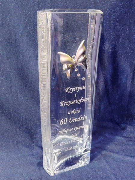 Pamiątkowy grawer z okazji urodzin można także wykonać na innych modelach wazonów.