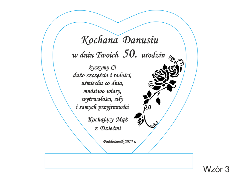 Istnieje możliwość graweru dedykacji wg indywidualnych ustaleń i projektu lub wg jednego ze wzorów.