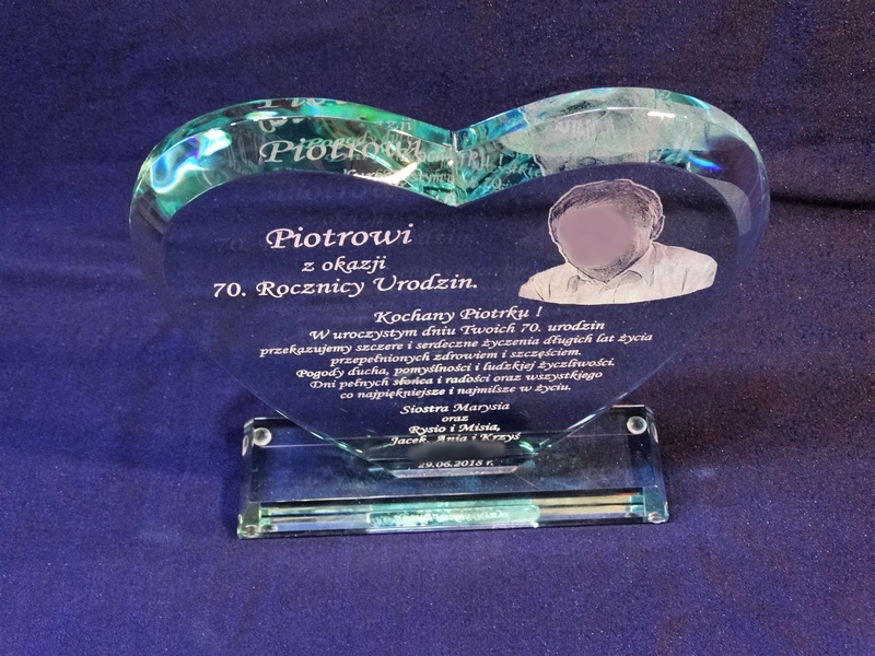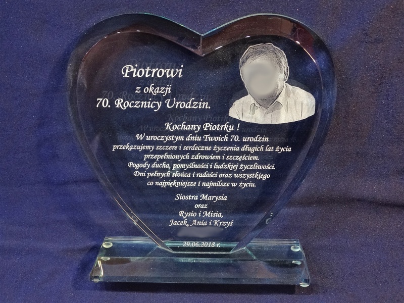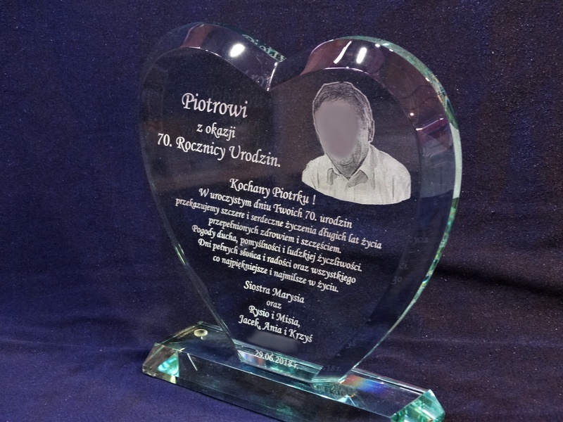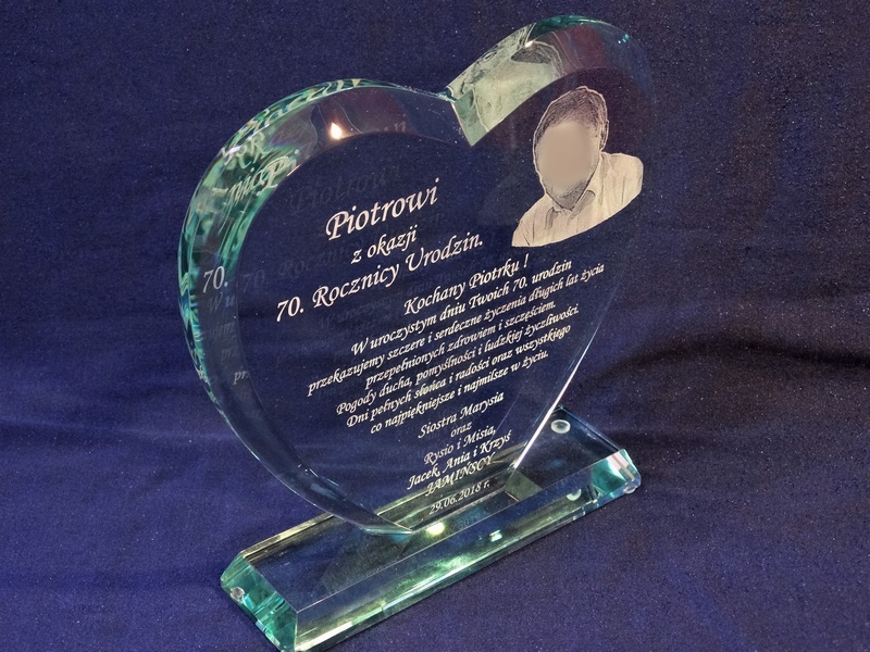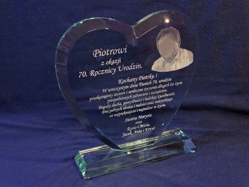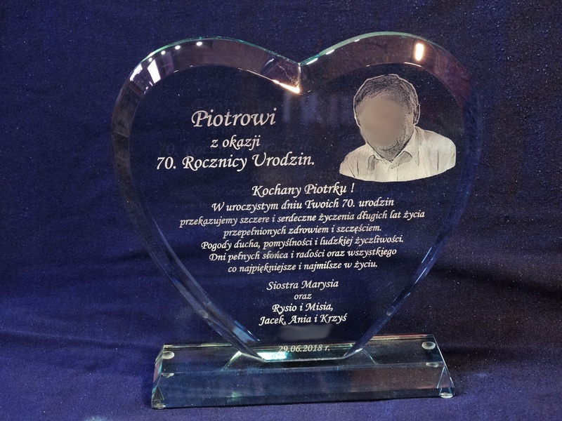 Pamiątkę urodzinową z grawerem można także wykonać na innych modelach statuetek szklanych.