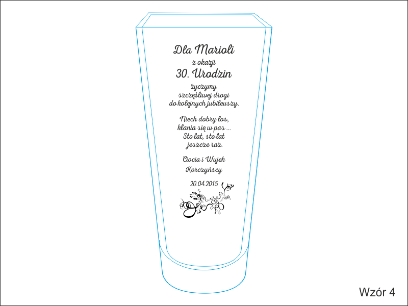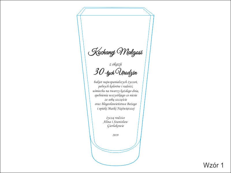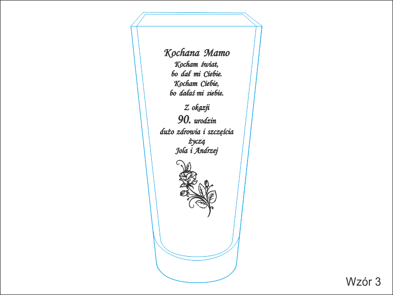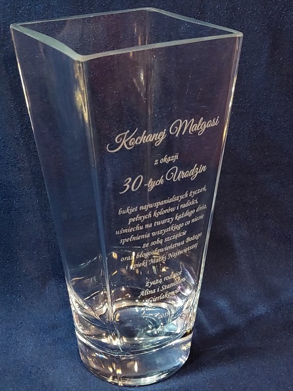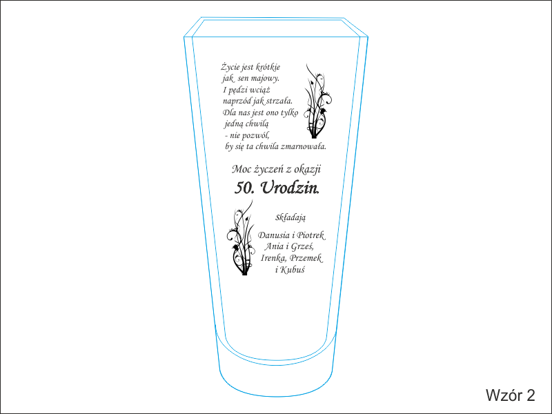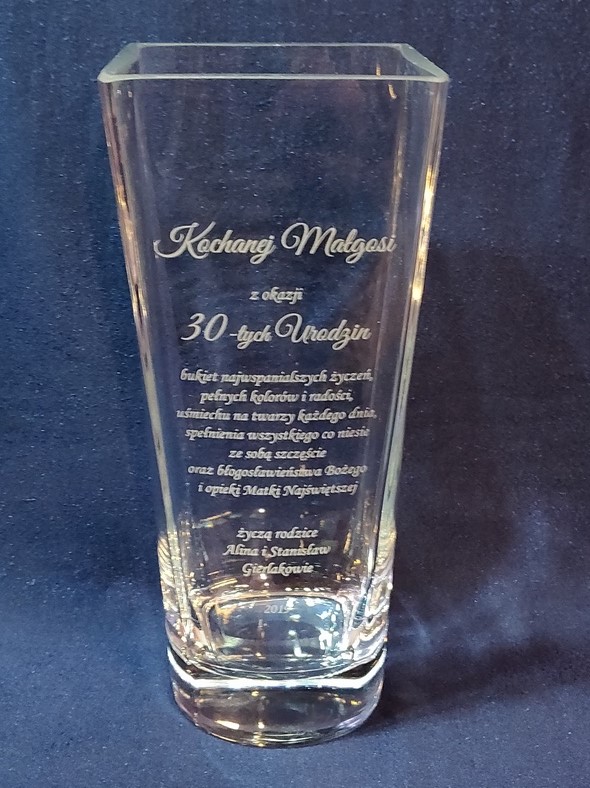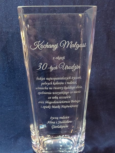 Dedykację dla Jubilata można także wykonać na innych modelach wazonów.