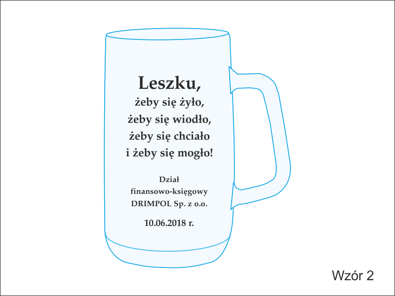 Na kuflu wykonany jest grawer ozdobnych grafik i dedykacji dla Niego.