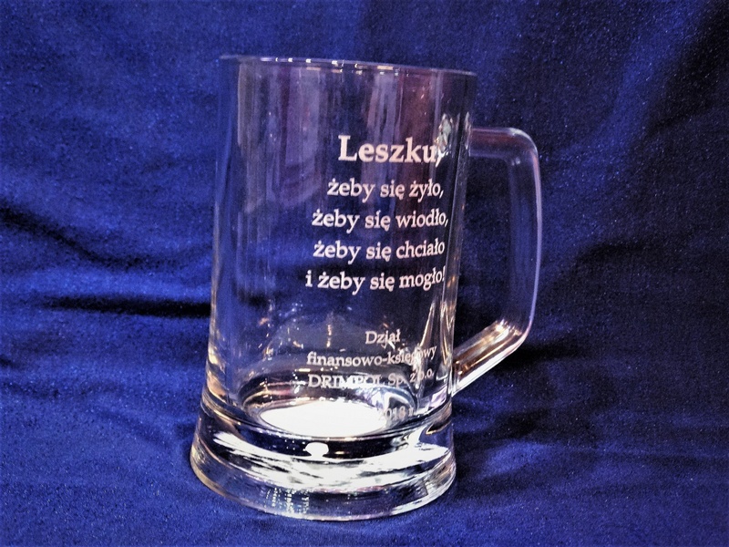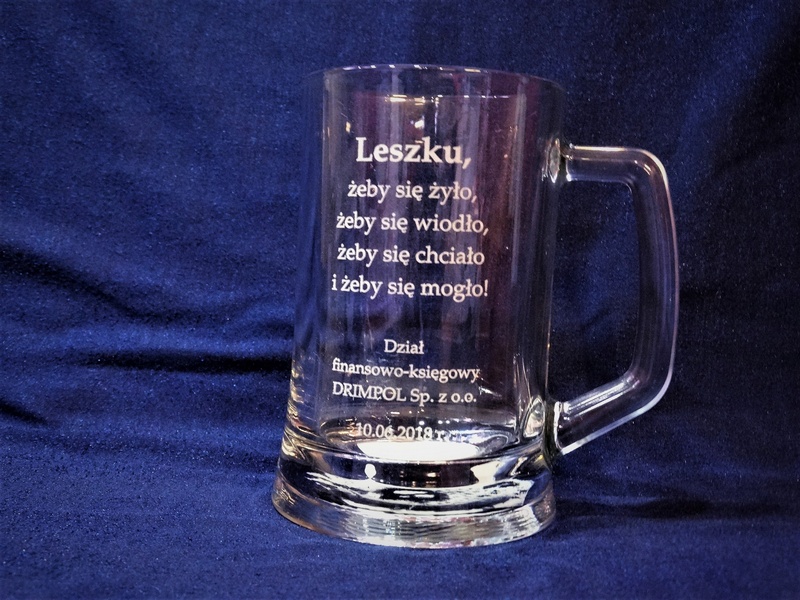 Upominek dla Niego w postaci klasycznego kufla do piwa z grawerem dedykacji.