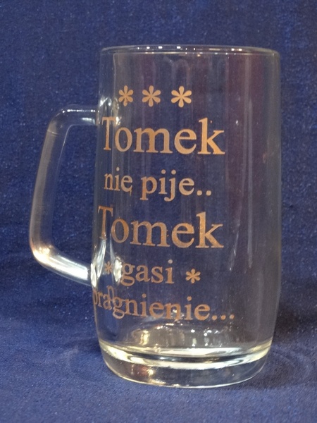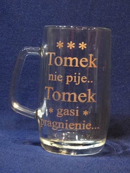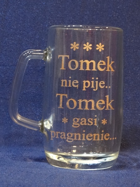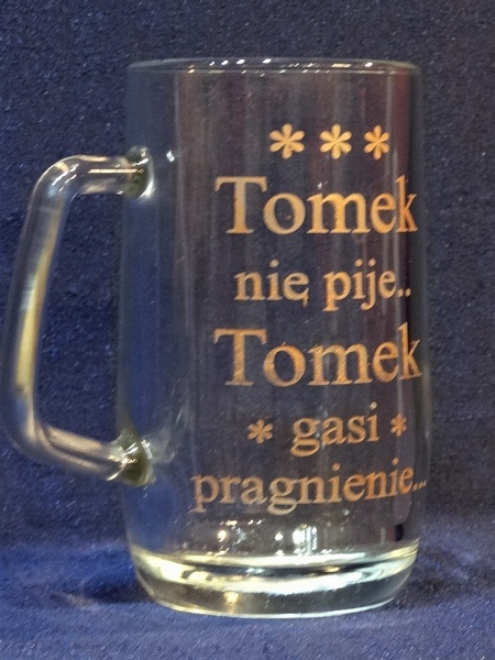 Wygrawerowany kufel może w szczególności sprawdzić się jako upominek czy prezent.