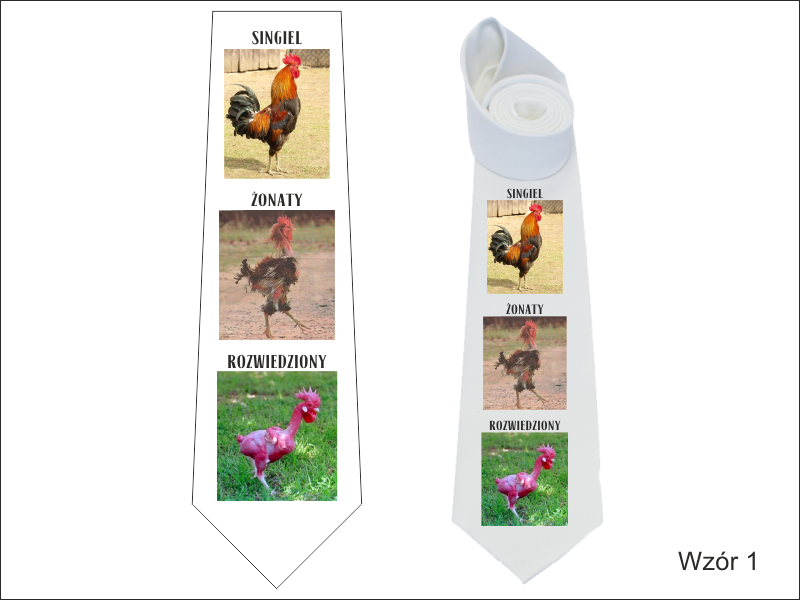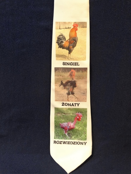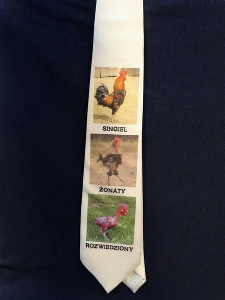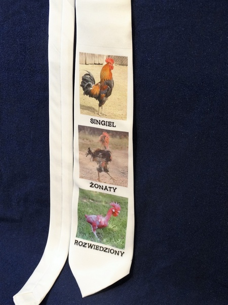 Prezentowany krawat ma nadruk, który sprawdzi się w szczególności na wieczór kawalerski.