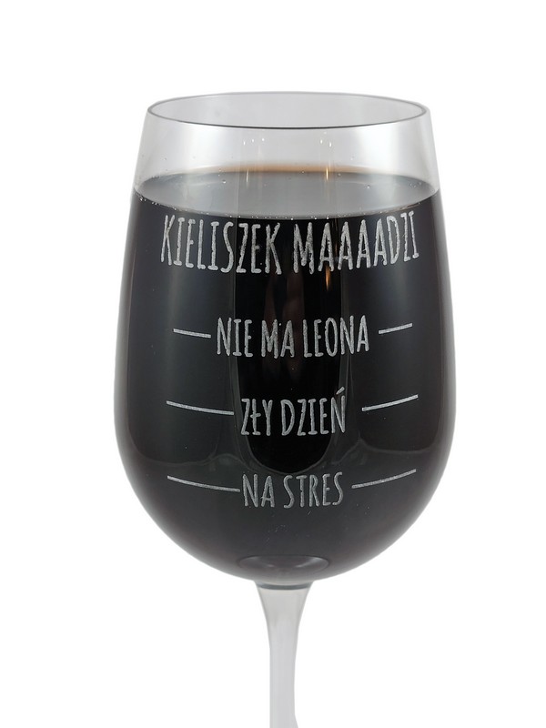 Pamiątkowy upominek dla Niej w formie kieliszka do wina z grawerem dedykacji.