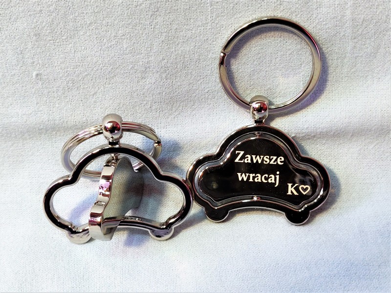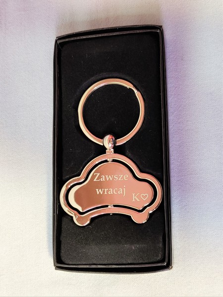 Większy wybór breloczków, na których można wykonać grawer dedykacji: https://prezentokolicznosciowy.pl/upominki/breloki/