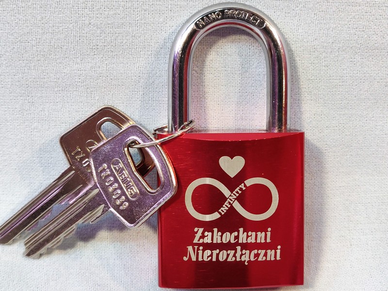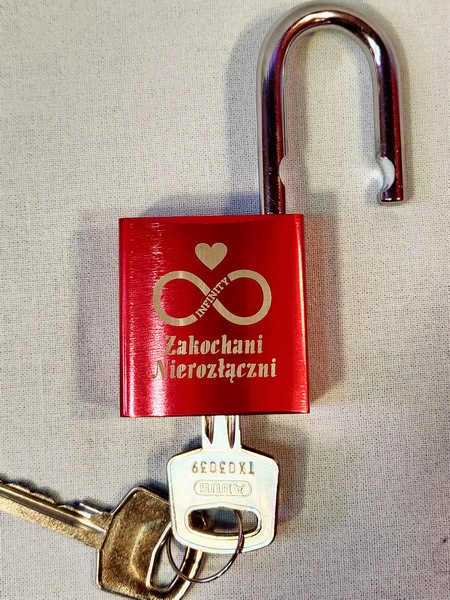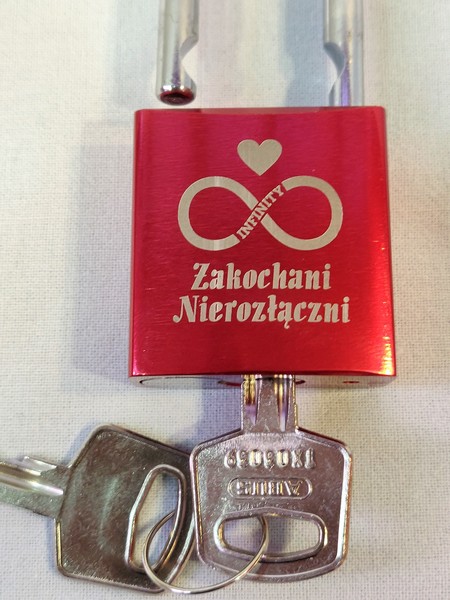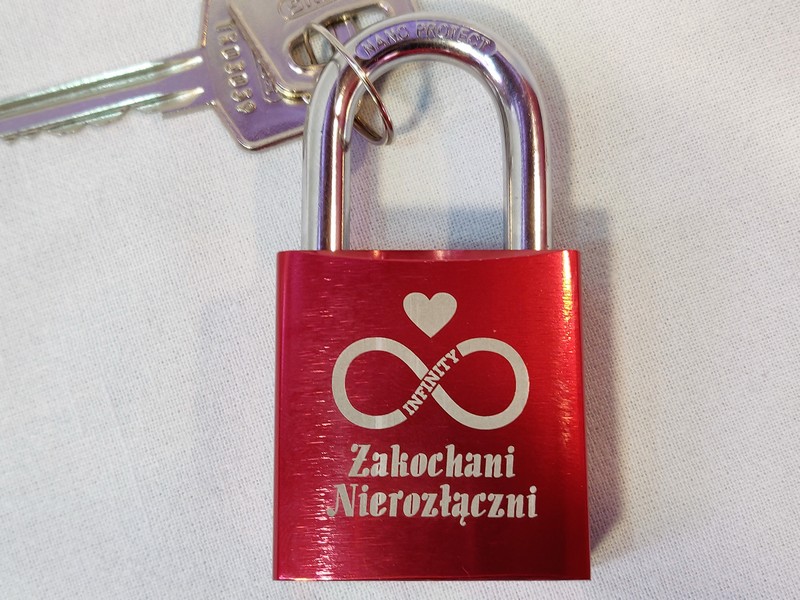 Na kłódce można wykonać grawer ozdobnych grafik czy dedykacji dla Zakochanych.