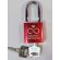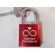 Korpus kłódki jest wykonany z aluminium anodowanego na czerwono, dlatego grawer wychodzi na srebrno/szary kolor.