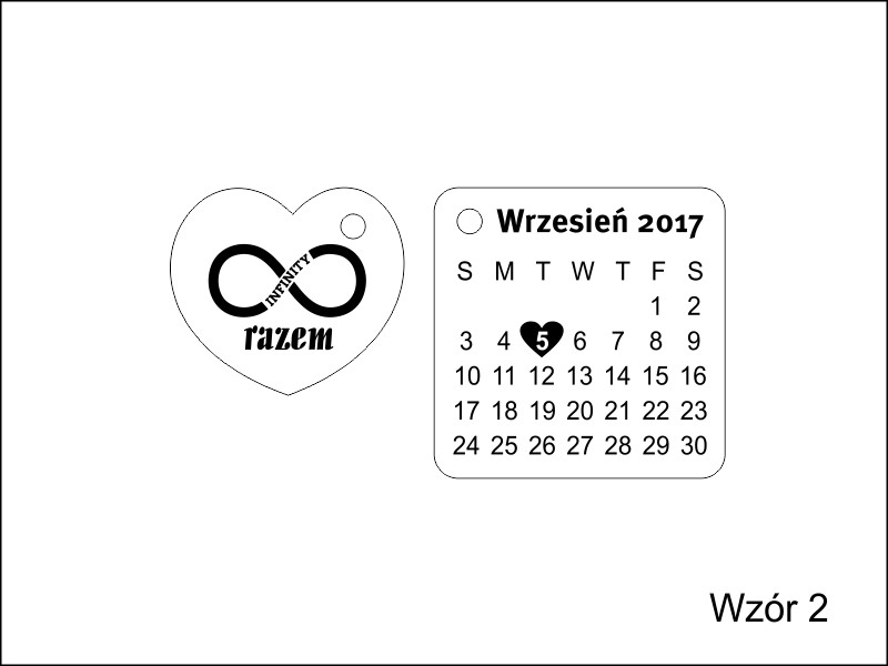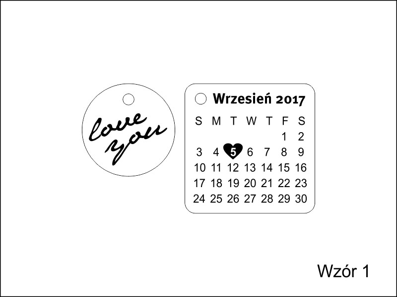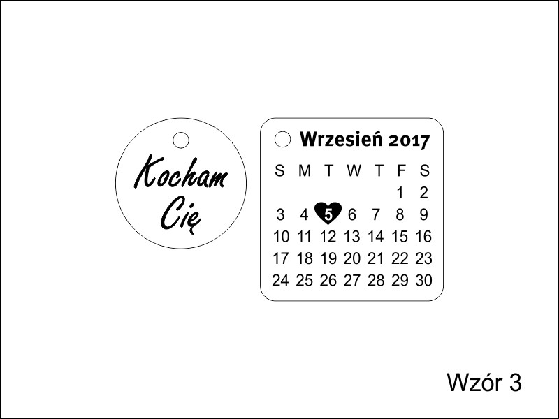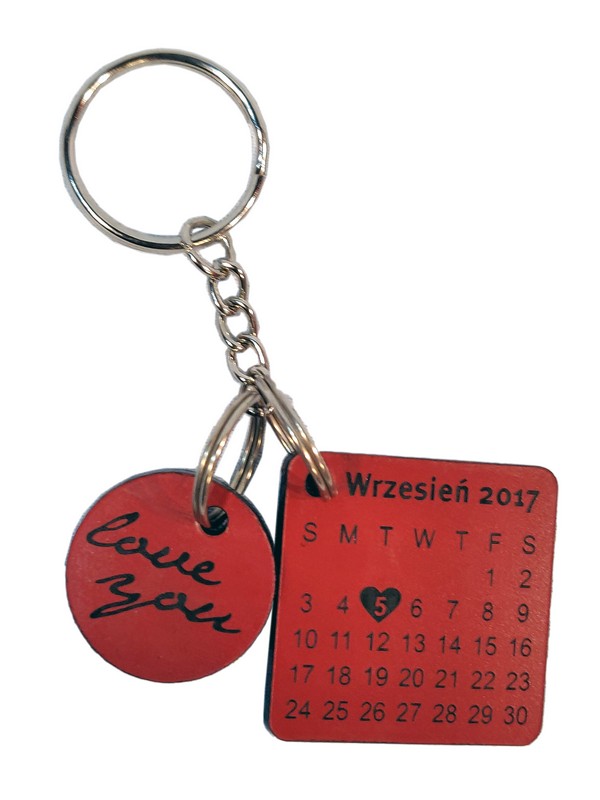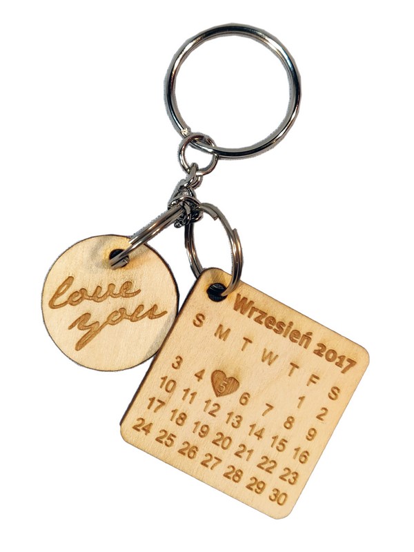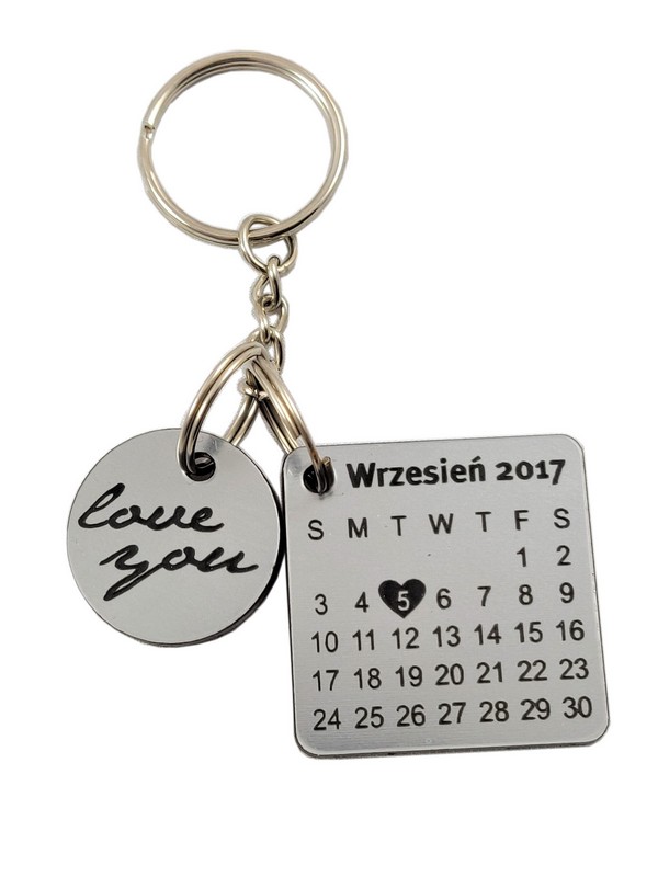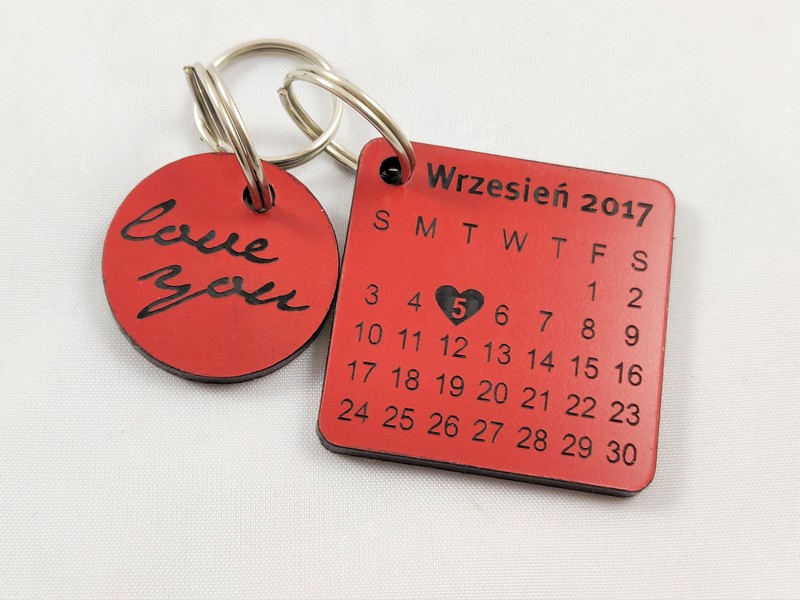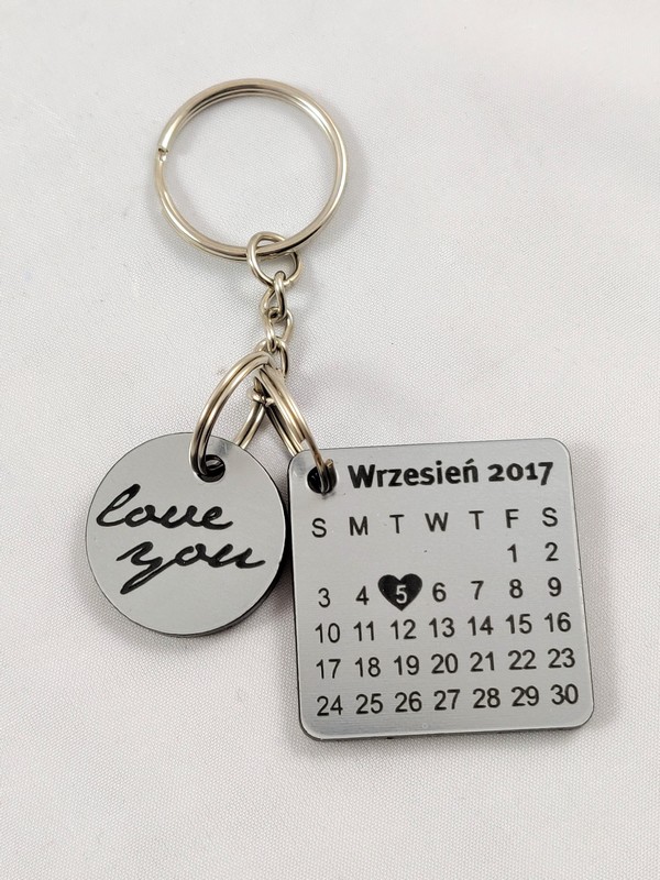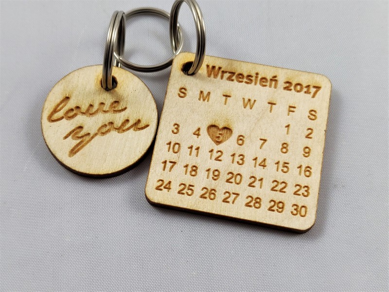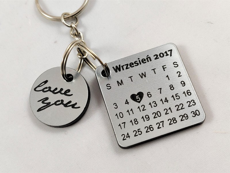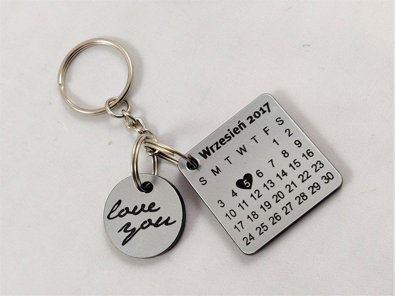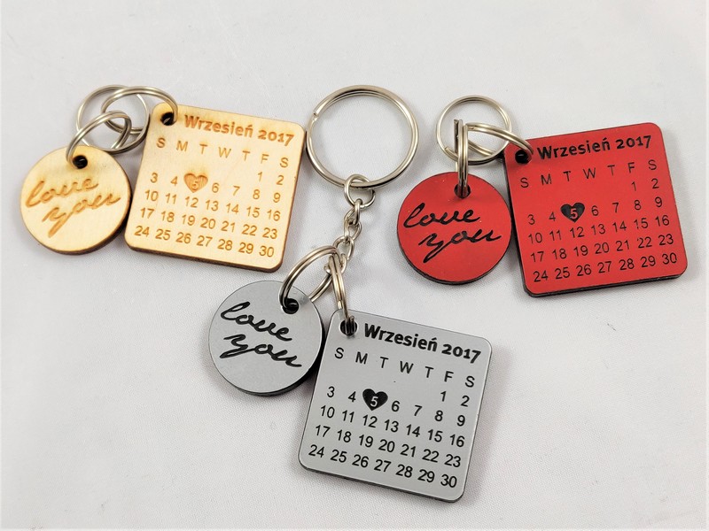 Na kółeczku czy sercu wykonany jest grawer krótkiej dedykacji, natomiast na prostokącie wygrawerowany jest miesiąc z kalendarza z zaznaczoną datą.