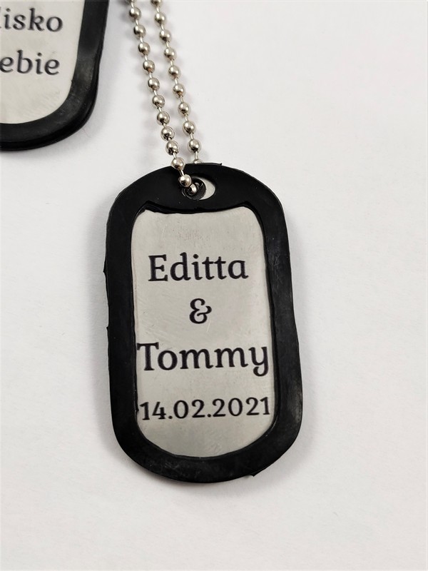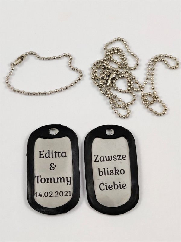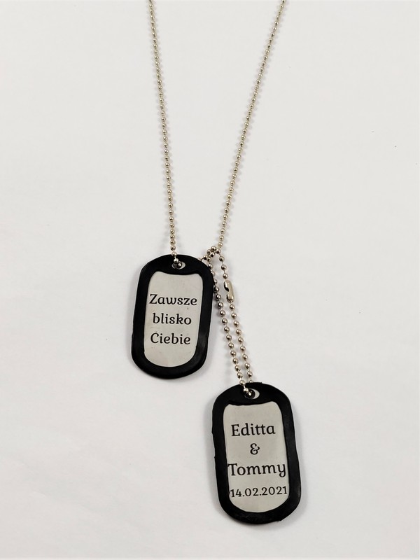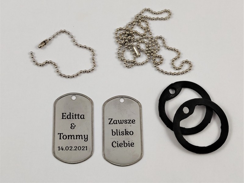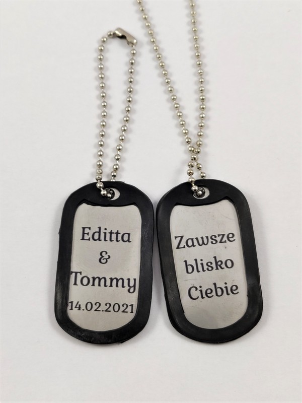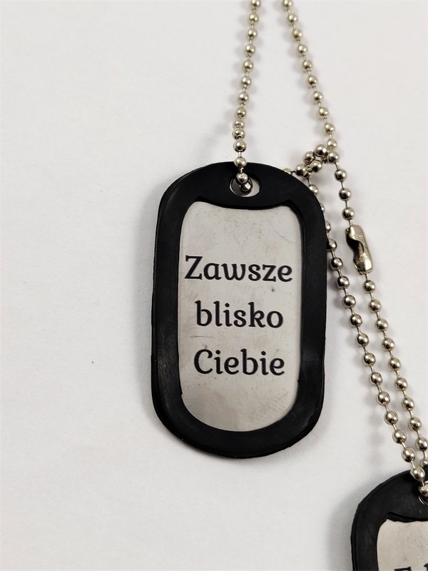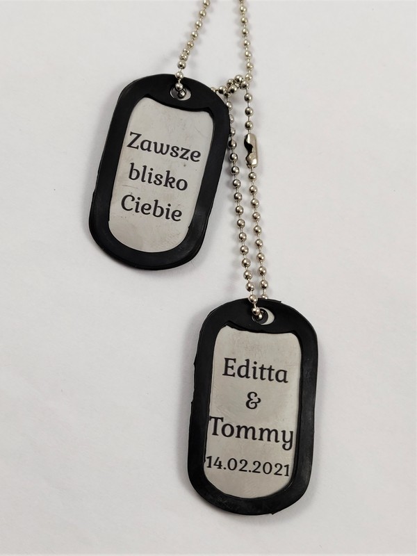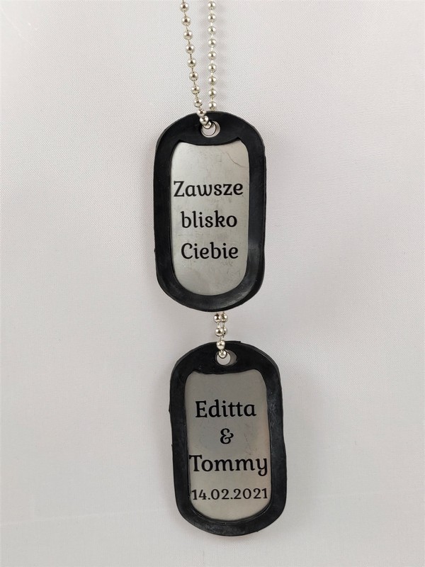 Na blaszkach nieśmiertelnika wykonany jest grawer dedykacji.