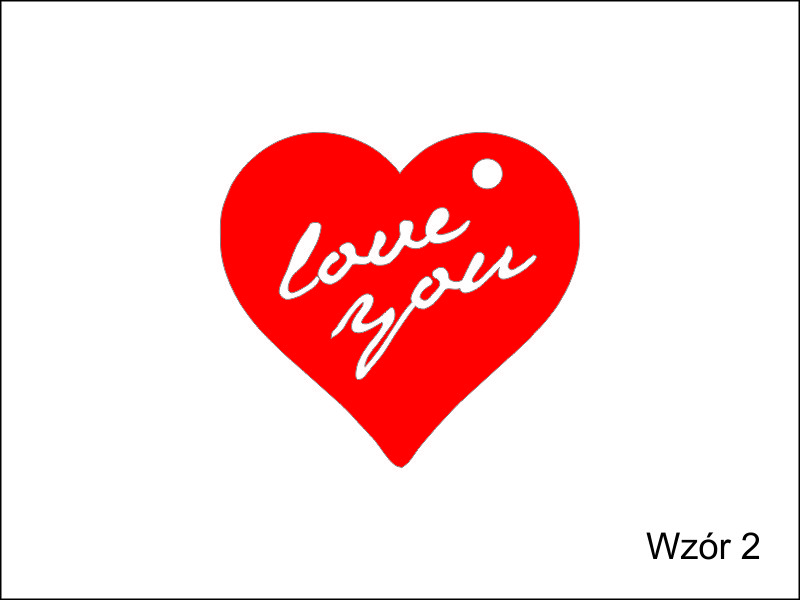 Brelok ma kształt serca, wewnątrz któreko dodatkowo wycięta jest treść dedykacji.