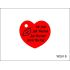 Upominek dla zakochanych w postaci breloczka z czerwonego filcu w kształcie serca z nadrukiem dedykacji.
