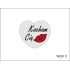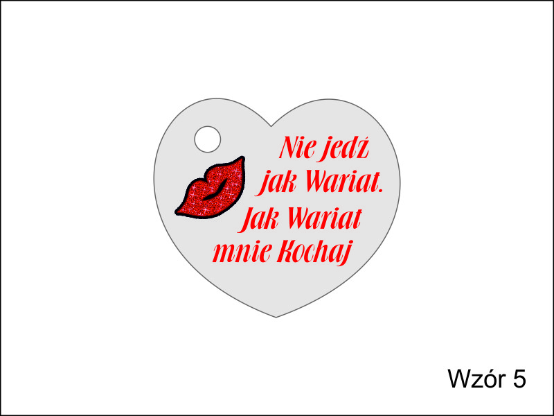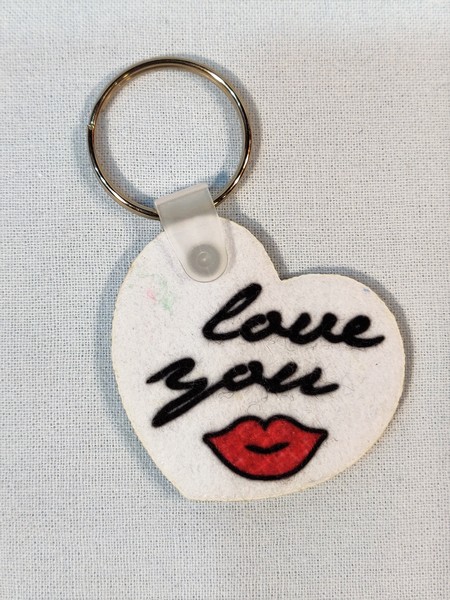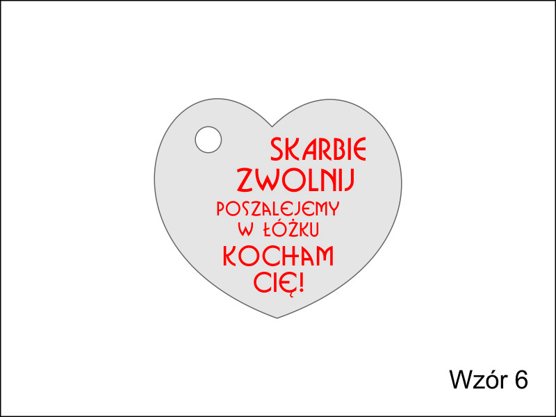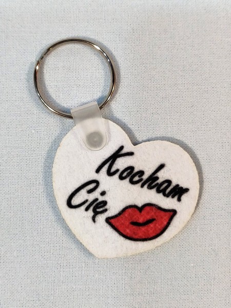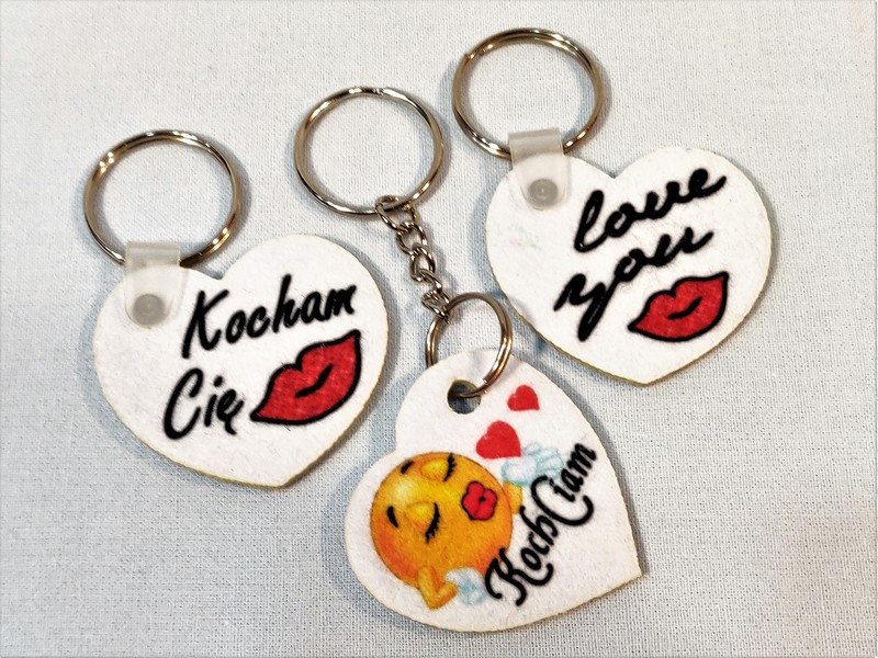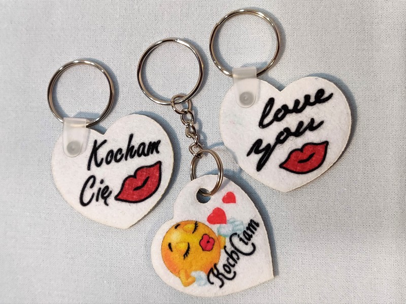 Brelok ma kształt wyciętego z filcu serca, na którym wykonany jest nadruk dedykacji.