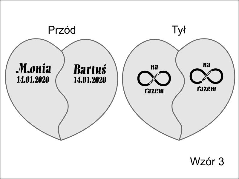 - możliwość graweru na przodzie i odwrocie połówek serca