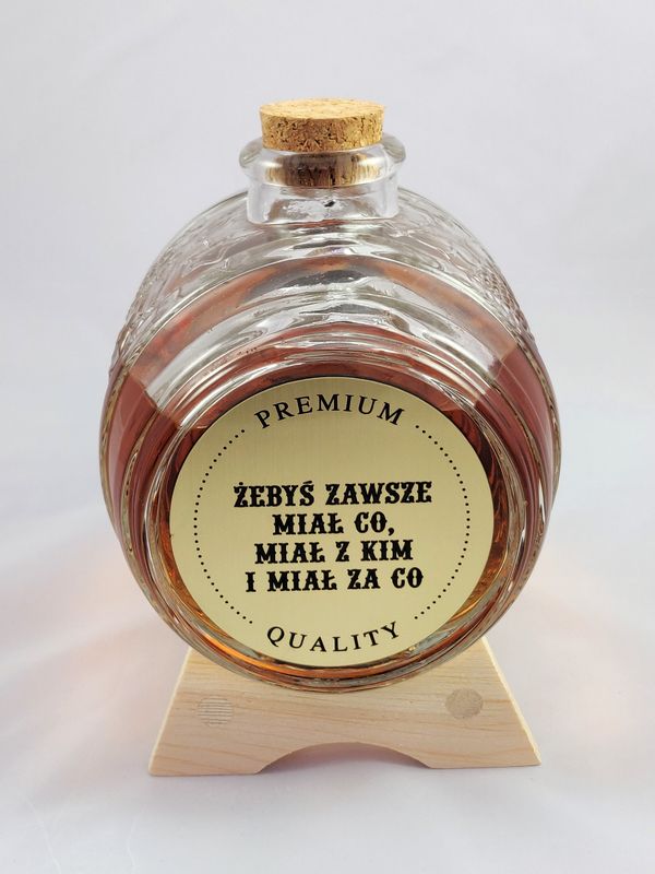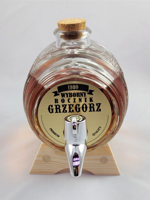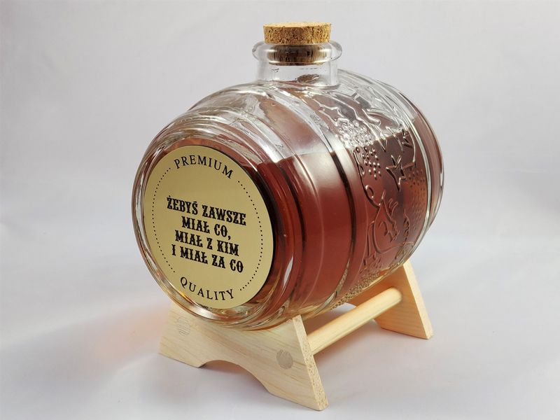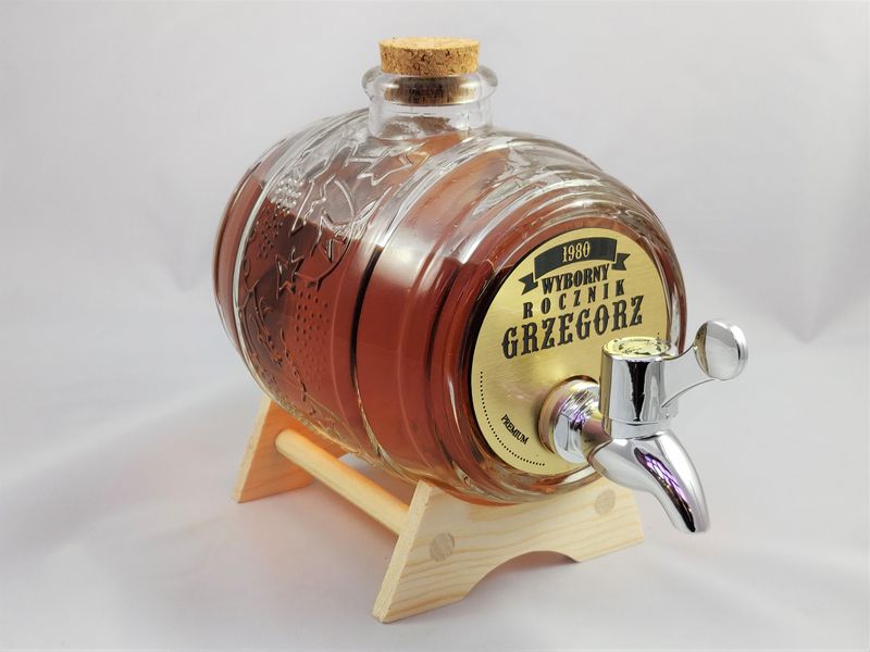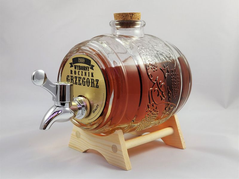 Szklana beczka z grawerem stanowi nietuzinkowy pomysł na prezent na różne okazje.