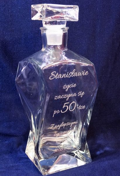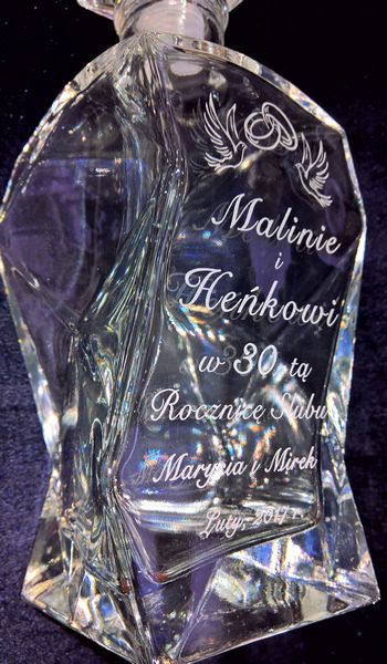 Na powierzchni karafki wykonujemy grawer według uzgodnionego wcześniej projektu: