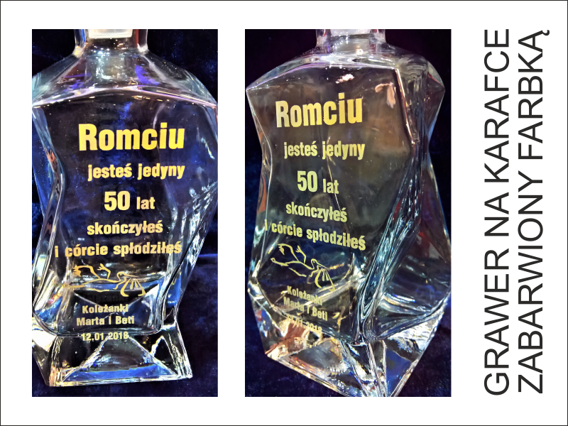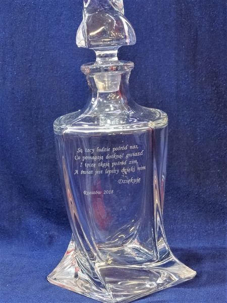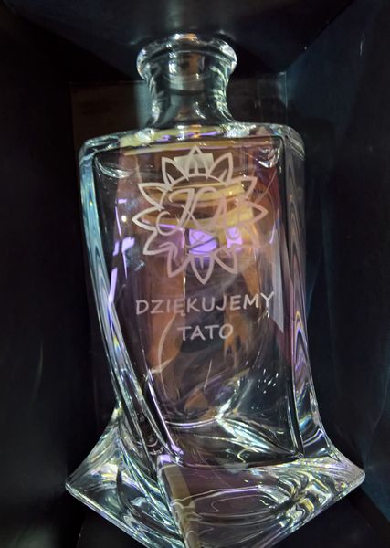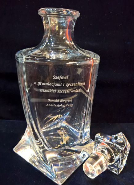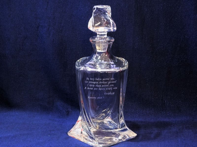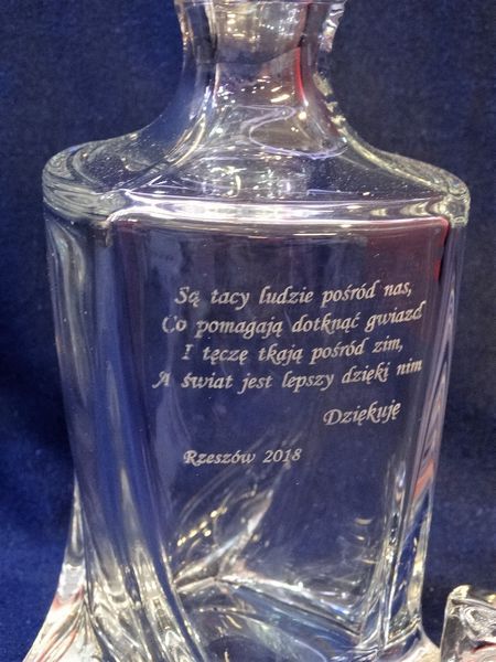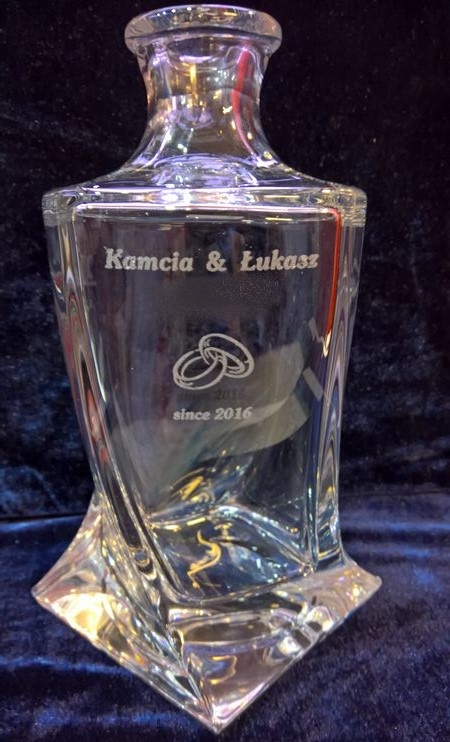 Na powierzchni karafki wykonujemy grawer według uzgodnionego wcześniej projektu:
