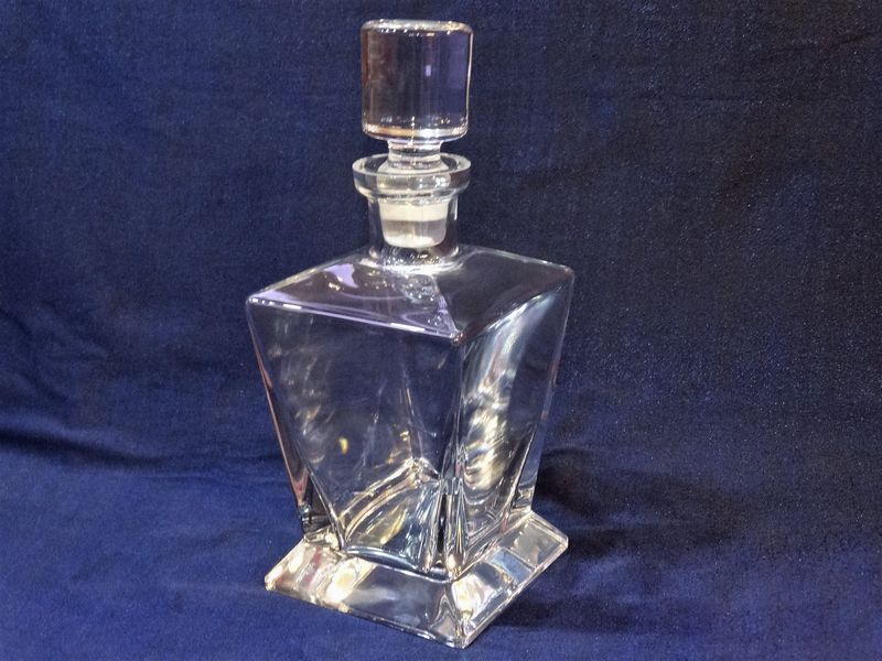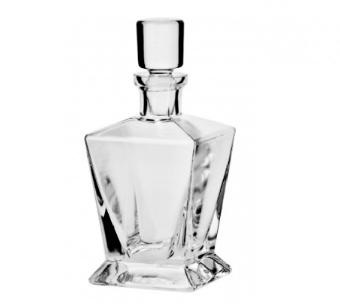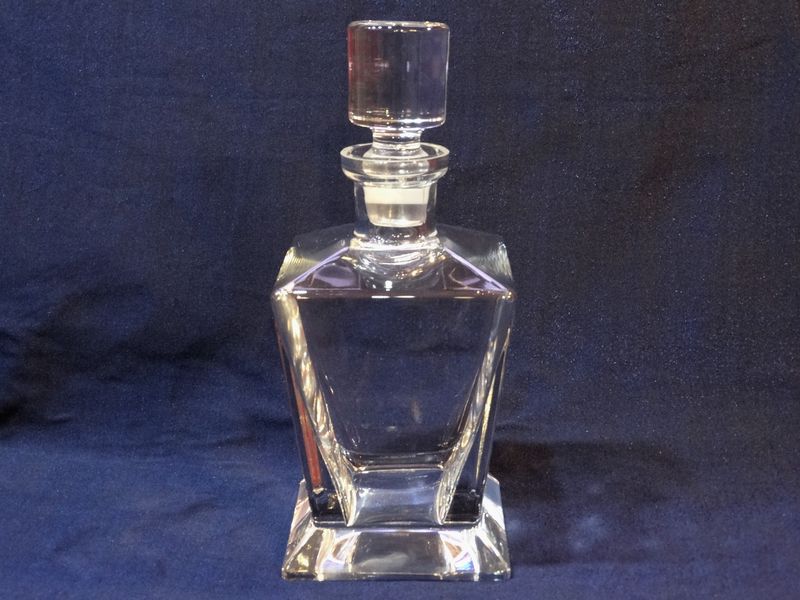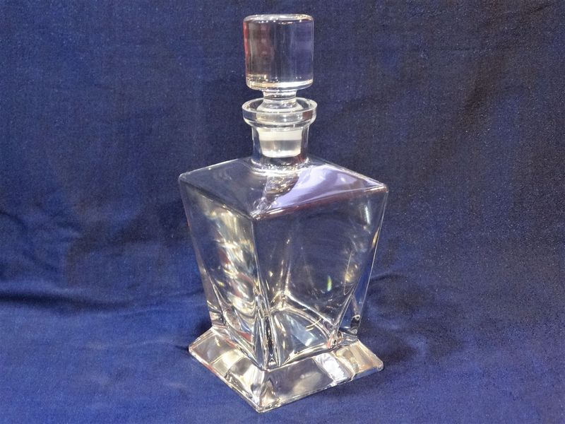 Prezentowana karafka ma kształt odwóconego trapezu z kwadratową podstawą. Wykończenie stanowi korek w kształcie walca.