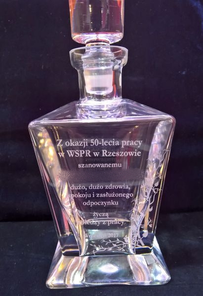 Na powierzchni karafki wykonujemy grawer według uzgodnionego wcześniej projektu: