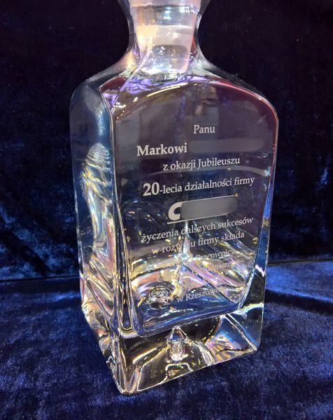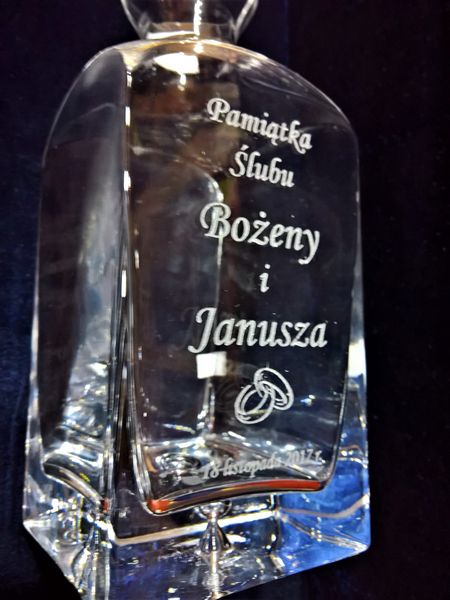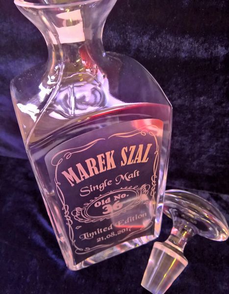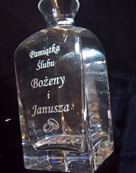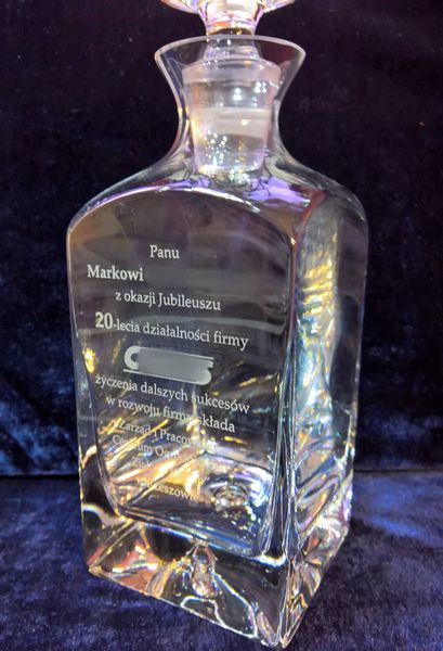 Na powierzchni karafki wykonujemy grawer według uzgodnionego wcześniej projektu: