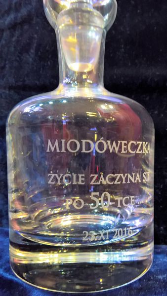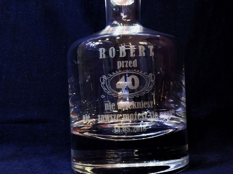 Na powierzchni karafki wykonujemy grawer według uzgodnionego wcześniej projektu: