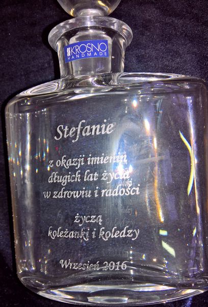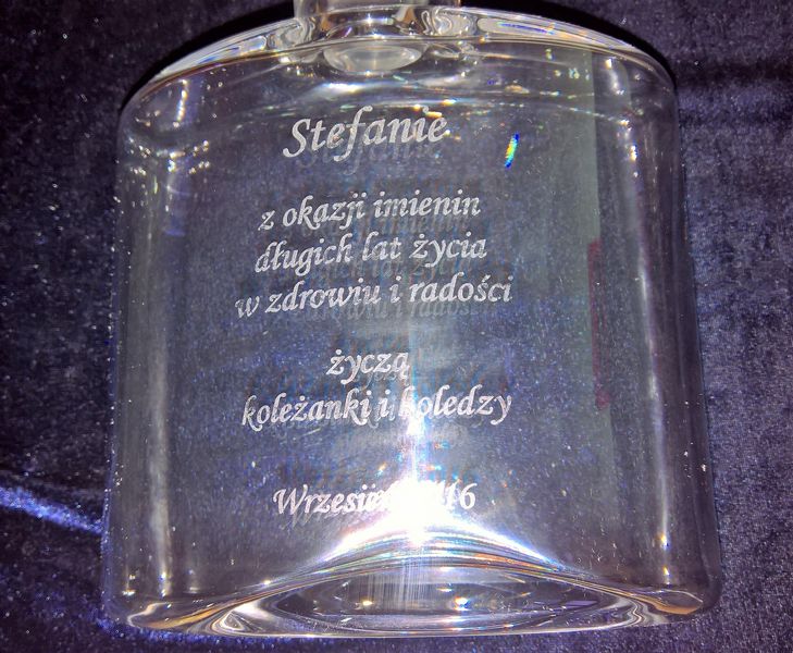 Na powierzchni karafki wykonujemy grawer według uzgodnionego wcześniej projektu: