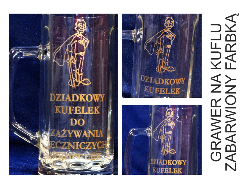 Grawer na kuflu może zostać dodatkowo zabarwiony farbką (najczęściej: srebrną, złotą, miedzianą, brązową).