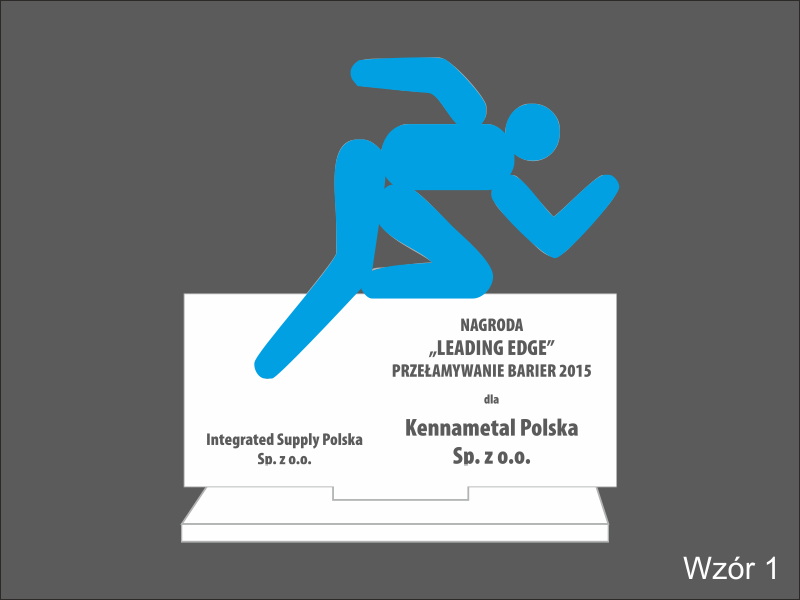 Symbol ludzika mocowany jest do bezbarwnej pleksy tworzącej postument z grawerem dedykacji.