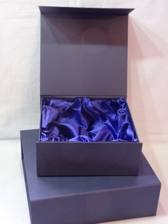 Do statuetki można dodatkowo zamówić składane etui kartonowe, wyściełane materiałem, w kolorze niebieskim.