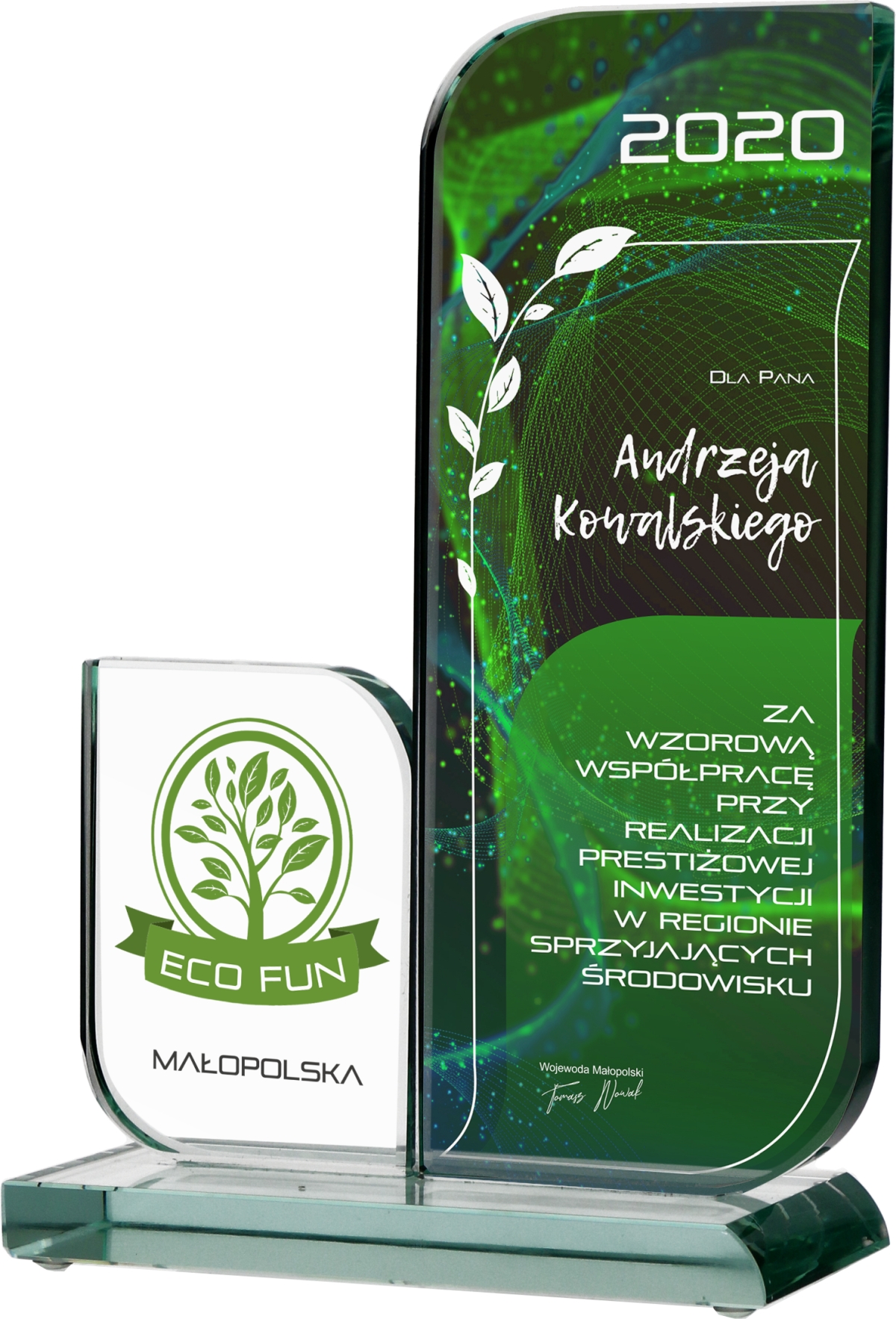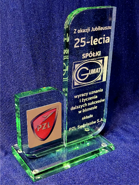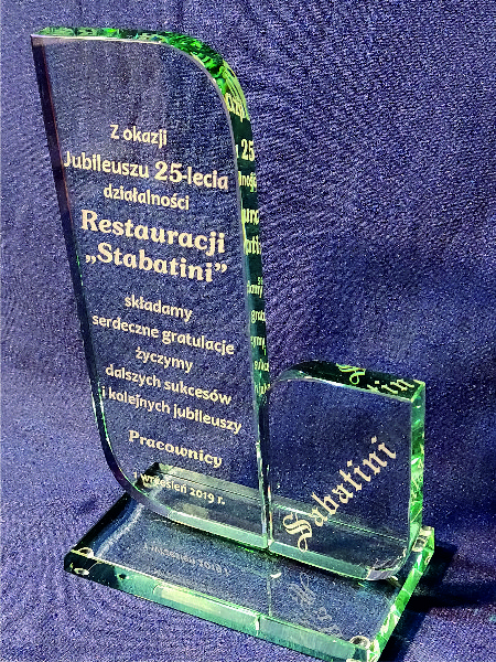 Tafle szklane statuetki mają szlifowane krawędzie.