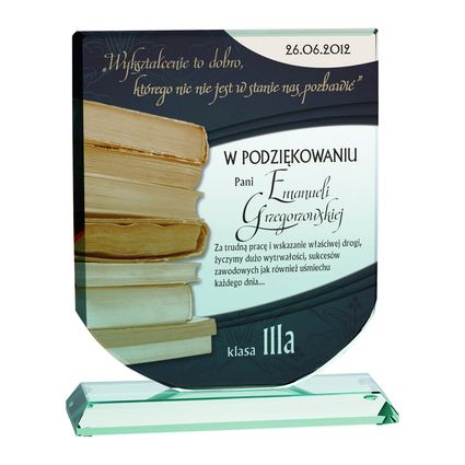 Statuetka szklana G001 z grubego szkła z grawerem lub nadrukiem.