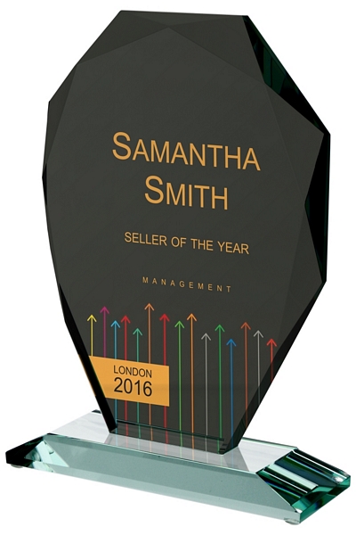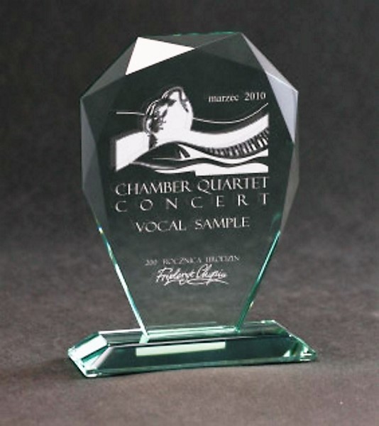 Statuetka szklana G007 z grubego szkła z grawerem lub nadrukiem.