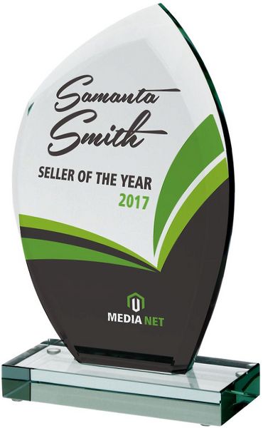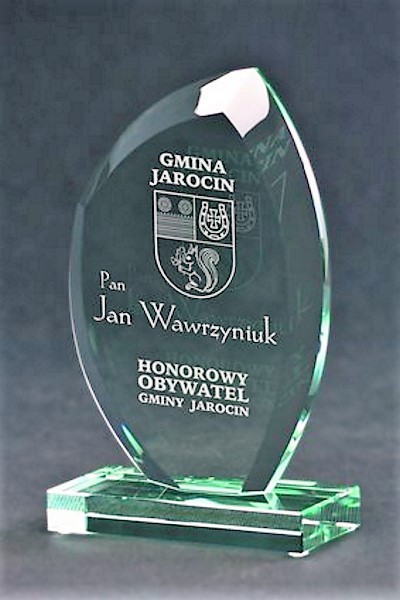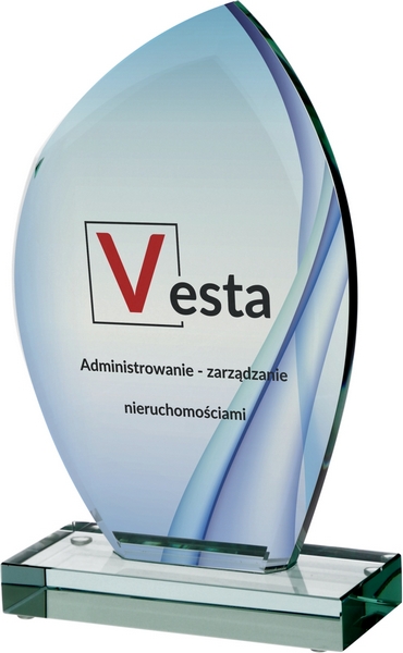 Statuetka szklana G010 z grubego szkła z grawerem lub nadrukiem.