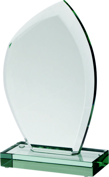 Statuetka szklana ma kształt żagielka ze szlifowaną krawędzią.