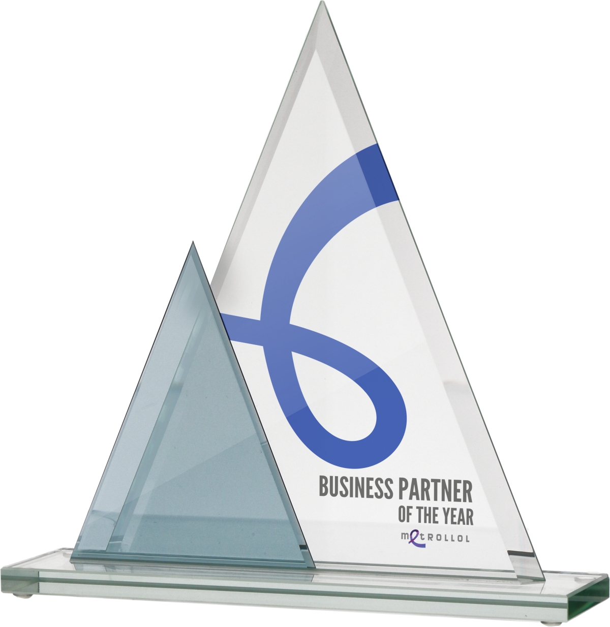 Statuetka szklana złożona jest z dwóch tafli szklanych ustawionych jedna za drugą.