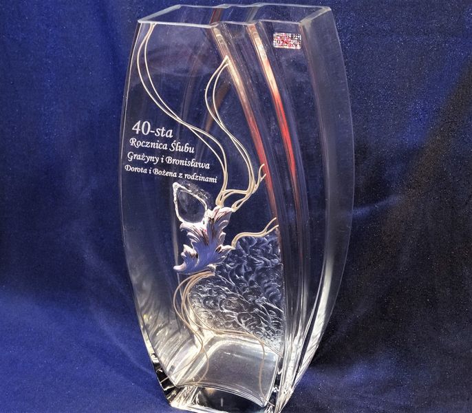 Intrygująca forma i zdobienie wazonu w połączeniu z dedykowanym pamiątkowym grawerem wzbudzi zachwyt i niepowtarzalne emocje obdarowanych.