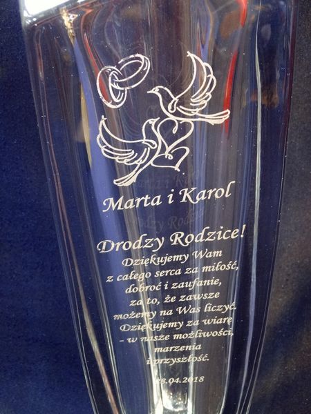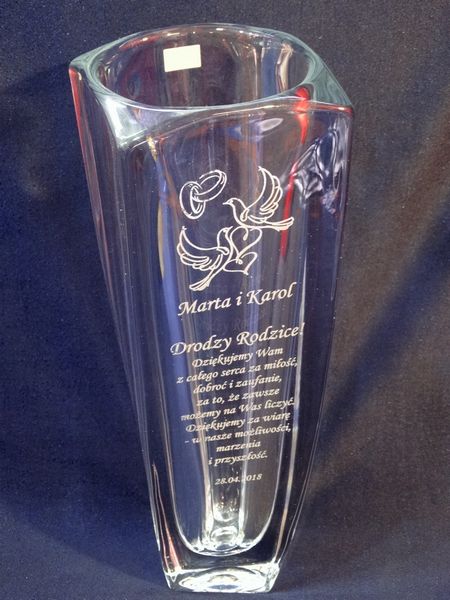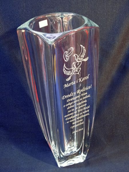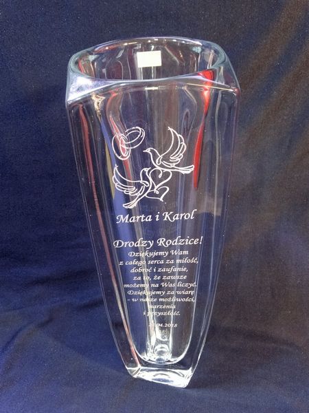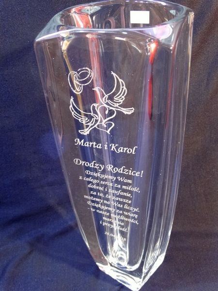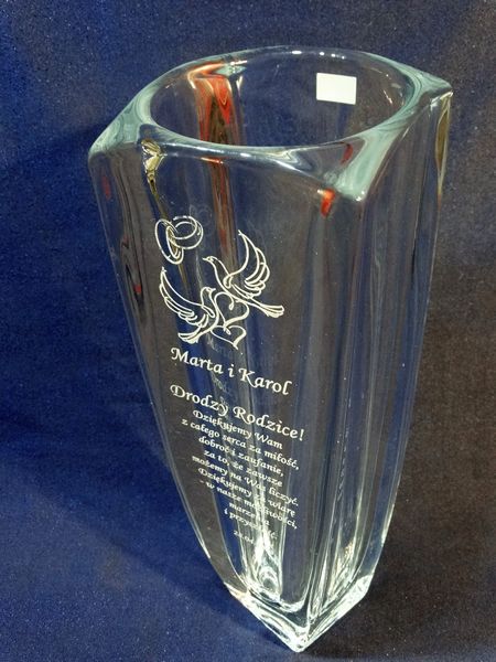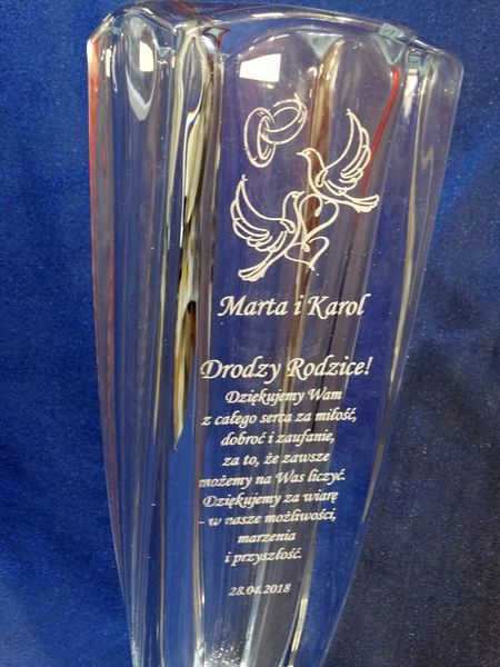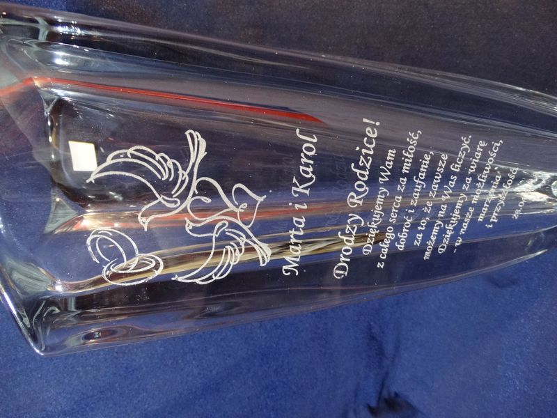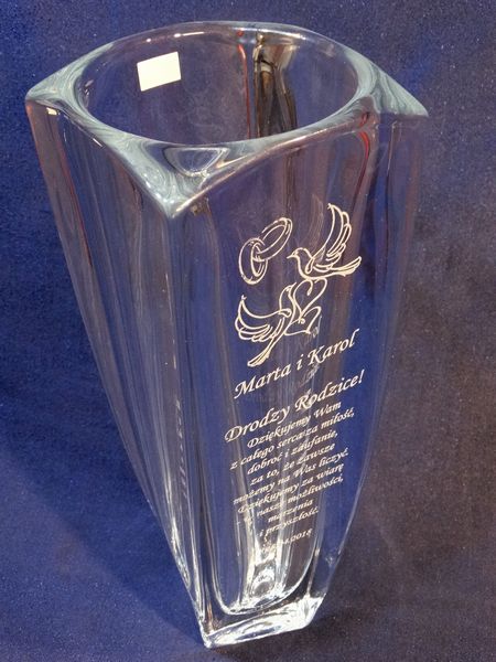 Na powierzchni wazonu wykonujemy grawer według uzgodnionego wcześniej projektu: