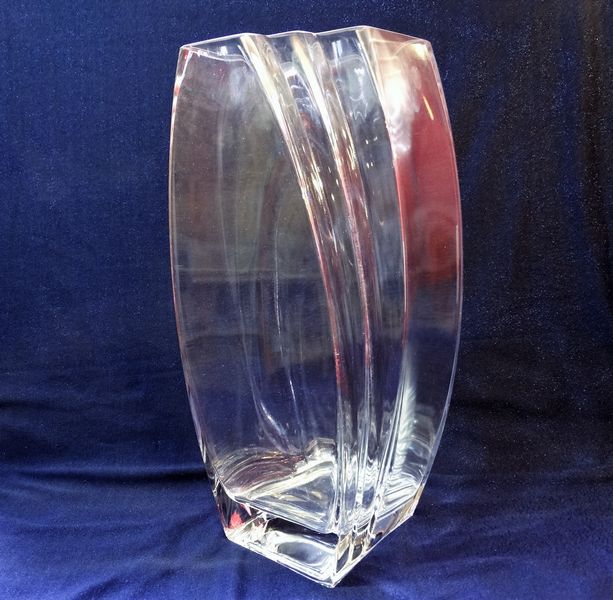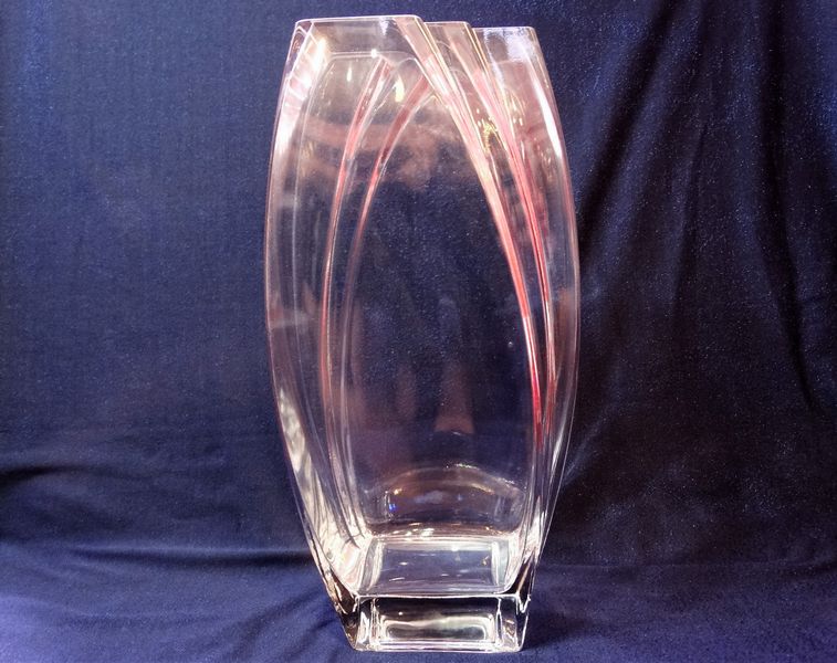 Ozdobny wazon szklany bezbarwny, ręcznie formowany z krośnieńskiej huty szkła.