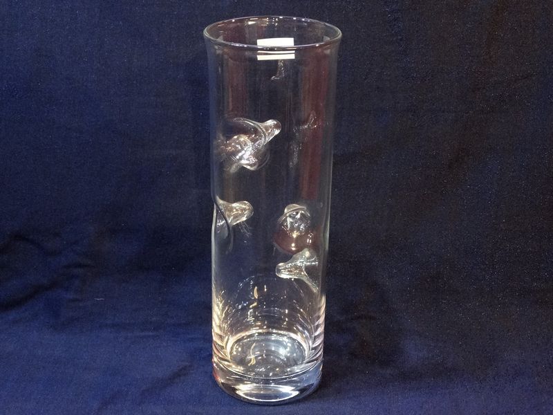 Wazon w kształcie rury z ozdobnymi wciągniętymi do wewnątrz wypustkami.