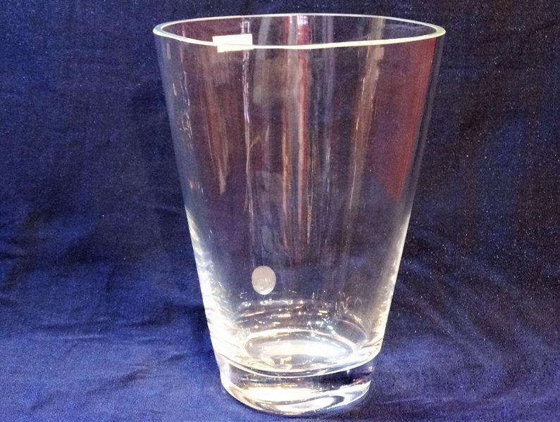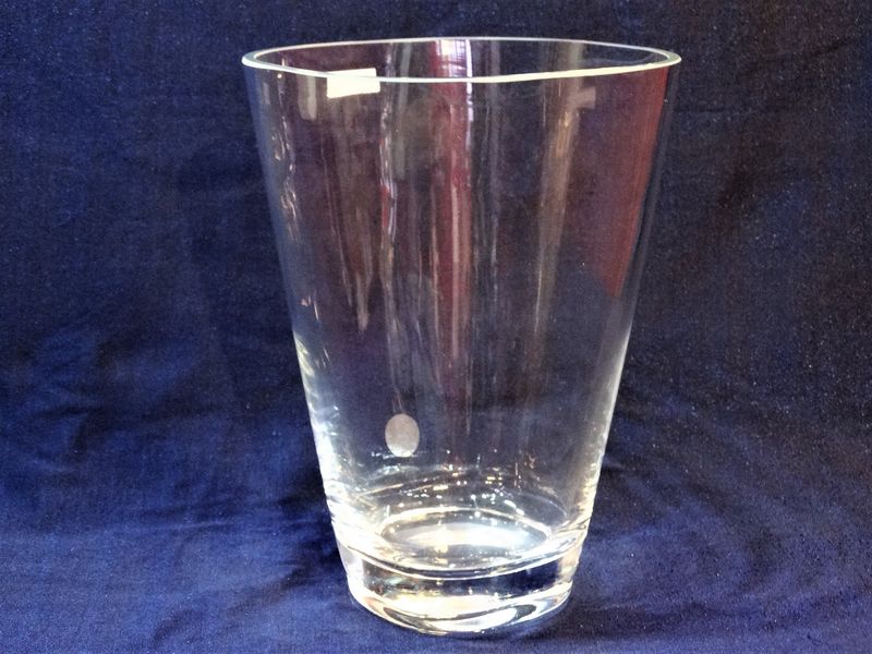 Ozdobny wazon szklany bezbarwny, ręcznie formowany z krośnieńskiej huty szkła.