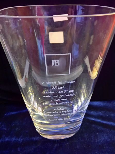 Na powierzchni wazonu wykonujemy grawer według uzgodnionego wcześniej projektu: