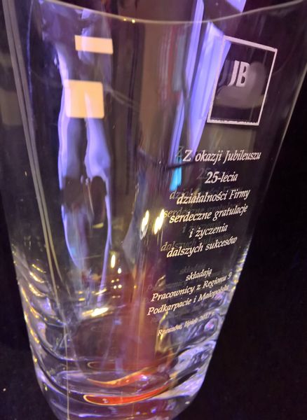 Z uwagi na zaoblenia krawędzi grawer na wazonie możliwy jest w wypłaszczonej centralnej części wazonu.
