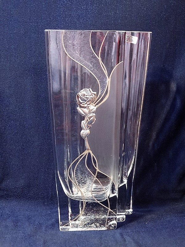 Wazon Ox-Art Decorator 125/300 z ozdobną różą, wysokości 30 cm, z grawerem.