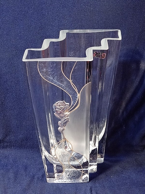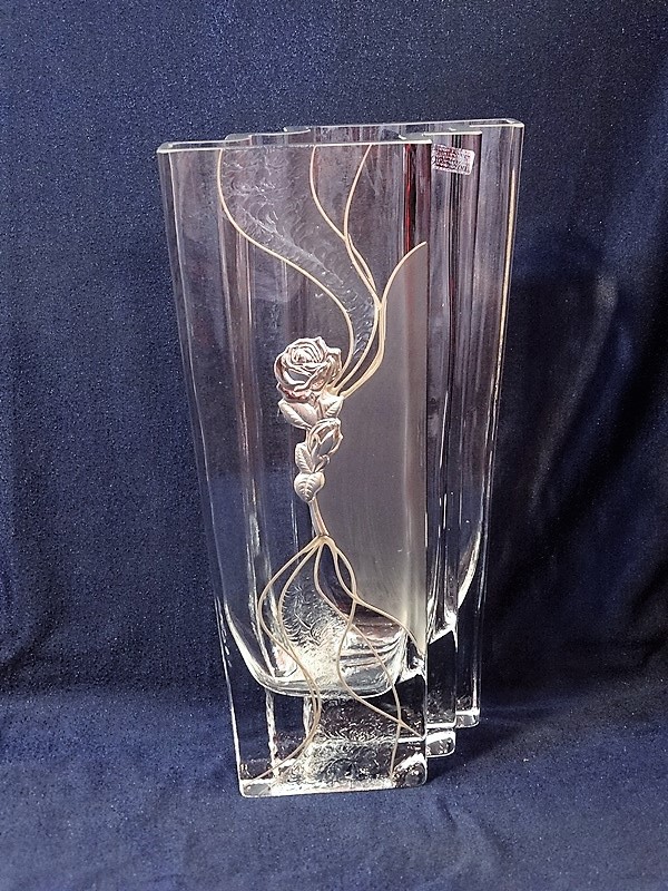 Wazon Ox-Art Decorator 125/300 z ozdobną różą, wysokości 30 cm, z grawerem.