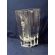 Niepowtarzalny, ręcznie formowany, zdobiony wazon szklany w prostokątnym kształcie z bocznymi schodkami.