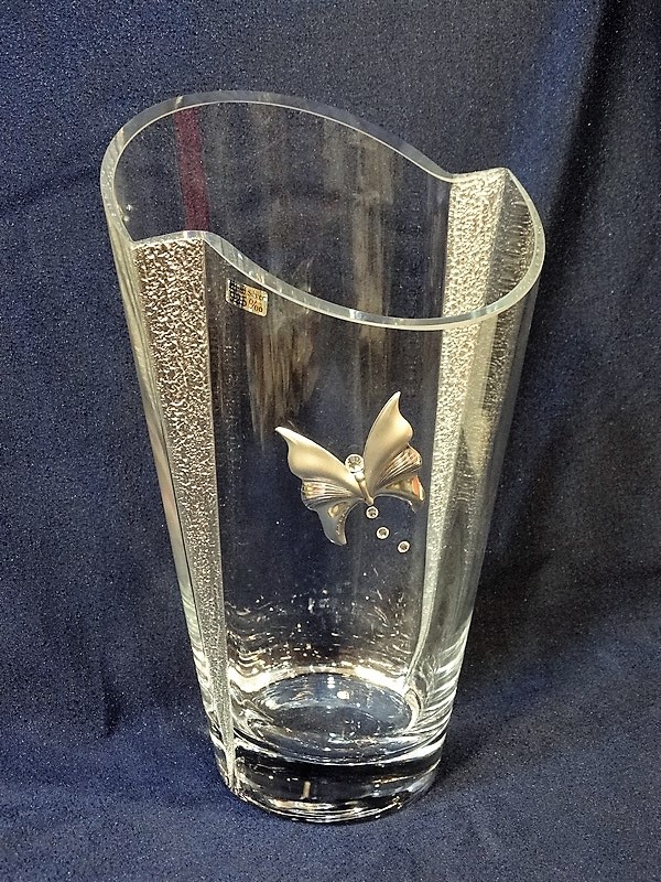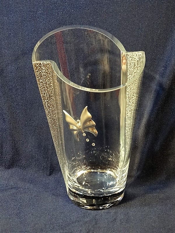 Wazon Ox-Art Decorator 410/300 z ozdobnym motylem, wysokości 30 cm, z grawerem.